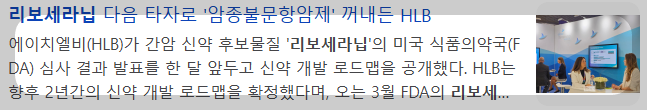 최근 뉴스를 살펴보고 에이치엘비에 대한 정보를 확인을 해보시기 바랍니다.