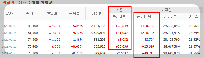 ✔️ 기관 순매수 지속: 최근 3개월간 기관투자자는 약 500억 원 이상의 순매수를 기록