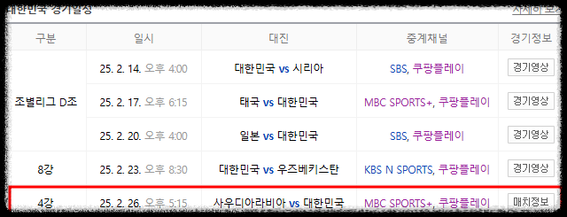 2025 AFC U-20 아시안컵 4강 경기 사우디아라비아전 2월 26일 17시 15분에서 쿠팡플레이, mbc sport+에서 중계를 하면서 응원하면 좋은 결과가 있을 것으로 보입니다.