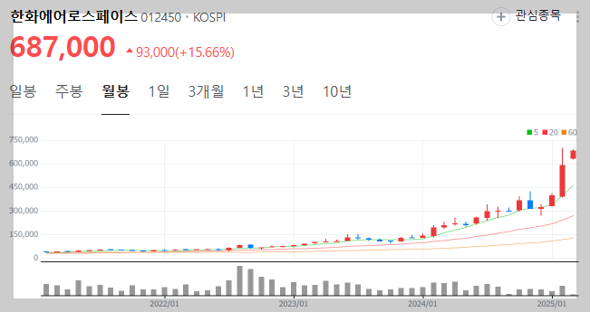 이러한 실적 호조에 힘입어 주가는 지속적인 상승세를 보여주었습니다. 2025년 1월 11일에는 전 거래일 대비 19.85% 상승하여 49만 5,000원에 거래가 되었으며, 장중에는 52주 신고가를 경신하고 있습니다.