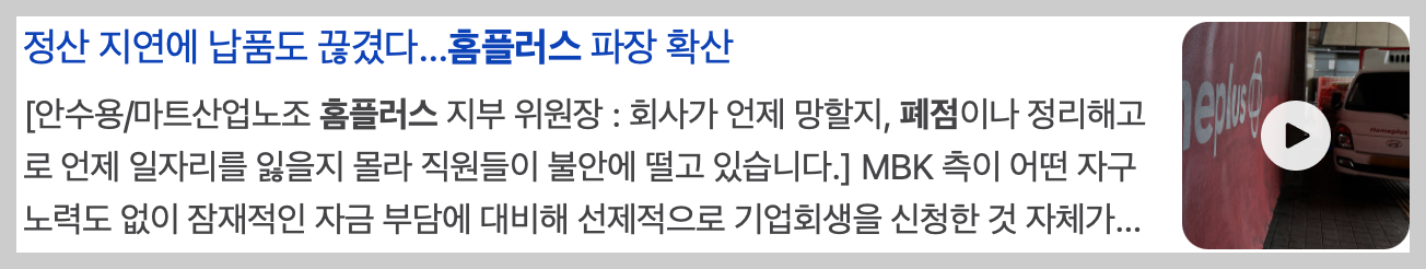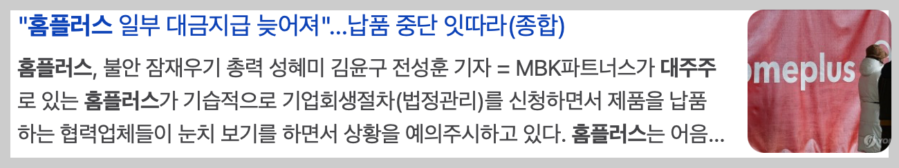 ✔ 홈플러스 대주주 MBK파트너스, 단기 수익 추구
