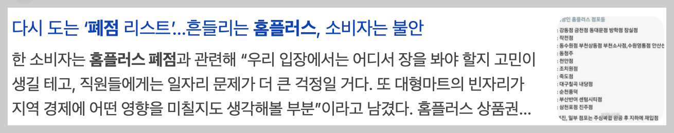최근 홈플러스가 법정관리(기업회생절차)를 신청하게 되면서 일부 점포 폐점 가능성이 커지고 있습니다.