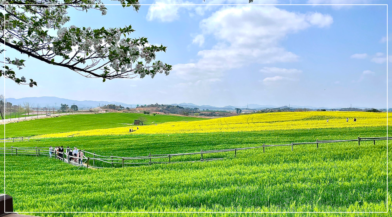 특히, 봄철 (4월 중순부터 5월 중순까지) 청보리와 유채꽃이 만개하여 정말 이쁜 경관을 한눈에 볼 수 있습니다.