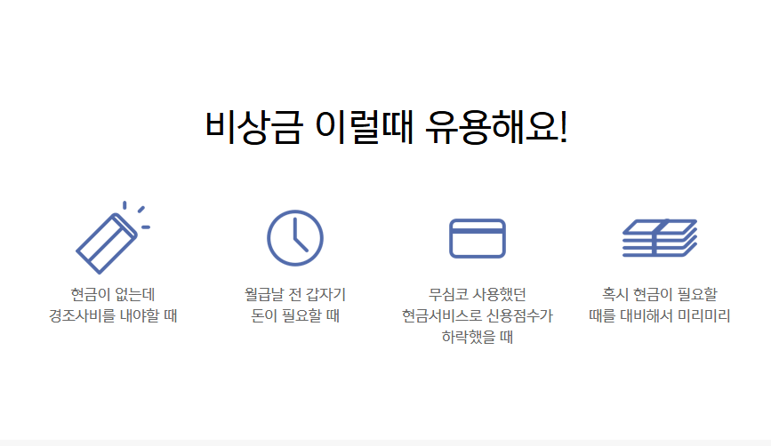 • 앱 내 메뉴에서 '비상금대출'을 선택합니다.