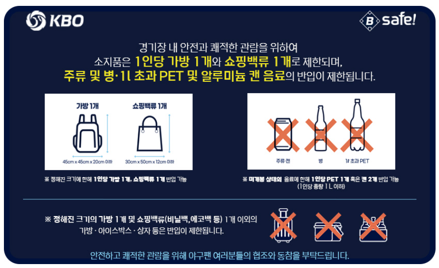 또한, 모바일 티켓을 이용하면 편리하게 입장할 수 있고, 경기장 이용 수칙을 준수하여 즐거운 관람이 될 수 있습니다.