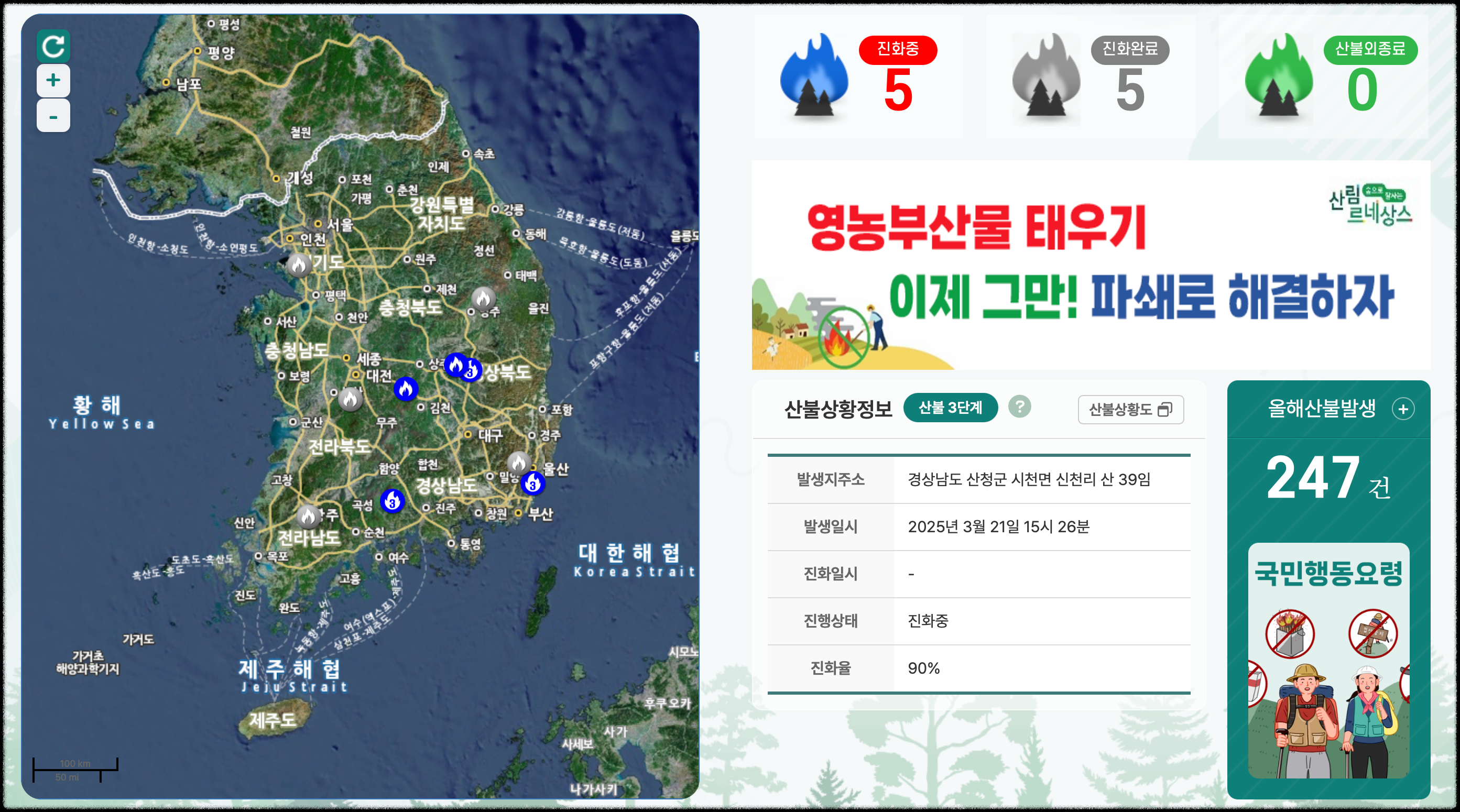의성 산불 발생 현황에 대해서는 산림청에서 확인을 할 수 있으며 실시간으로 확인을 하고 싶으신 분은 아래의 산불 현황 실시간 보기를 확인해서 산불에 대한 내용을 살펴보시기 바랍니다.