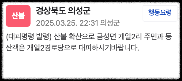 하지만, 현재 의성 산불에 의해서 대피를 하다가 많은 사람들이 부상을 입고 있으며, 산불이 났을때 대피 정보를 아래에서 확인을 해보세요.