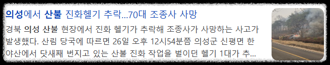 자세한 헬기 추락 관련 내용은 여기서 확인을 해보세요. 👉 의성 산불 헬기 추락 사고 기사