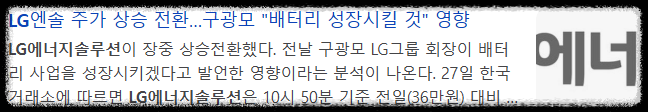 또한, 3월 26일의 경우에는 구광모 회장 한마디에 LG에너지솔루션 주가가 8% 상승을 하며 급등한 것을 보여주기도 하였습니다. -> 급등 이유 확인하기