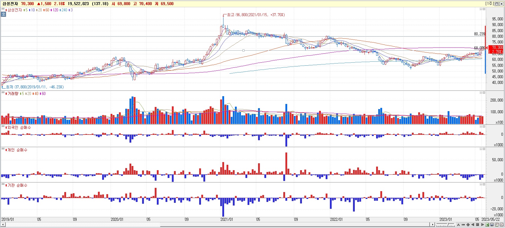 코로나이후에 최고점을 찍고 내려온 삼성전자가 왜 주식을 바닥을 찍고 현재 상승을 하고 있을까요??