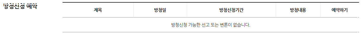2. 알림 / 소식 또는 메인 화면 중간 -> '방청 안내' 클릭