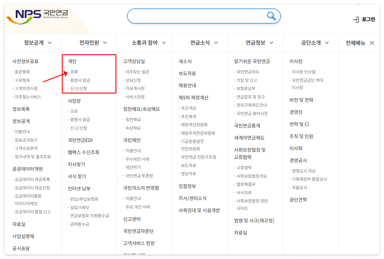 1. 국민연금공단 홈페이지 접속