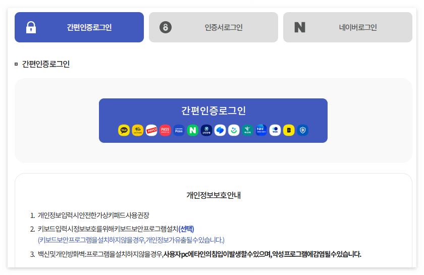 2. 간편 인증으로 로그인