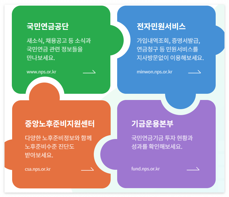 이어서 아래에서 국민연금공단 홈페이지 이용 방법에 대해서 알려드리도록 하겠습니다.