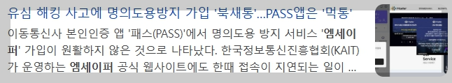 SK 및 알뜰폰을 이용하는 사용자는 2,500만 명으로 알려졌는데 해커로 인해 유심 정보가 모두 노출이 된 사실을 알 수 있습니다. 그렇기 때문에 PASS앱과 더불어서 명의도용방지를 할 수 있는 엠세이퍼 서비스를 이용하려고 가입을 하고 있는 상태입니다.