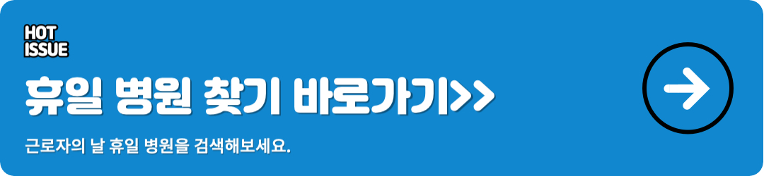 • 상세 내용 : 개인병원의 경우에는 해당 병원장에 따라서 휴무 여부가 결정이 됩니다. 또한, 대학병원과 종합병원의 경우에는 휴무로 지정을 하지 않고, 정상적으로 진료를 하는 곳도 있습니다. 따라서, 근로자의 날의 경우에는 병원이 쉬는 곳과 쉬지 않는 곳이 해마다 다르기 때문에 근로자의 날에 병원을 방문해야 한다면 아래의 응급 의료 포털을 조회 후 방문하는 것이 좋습니다.
