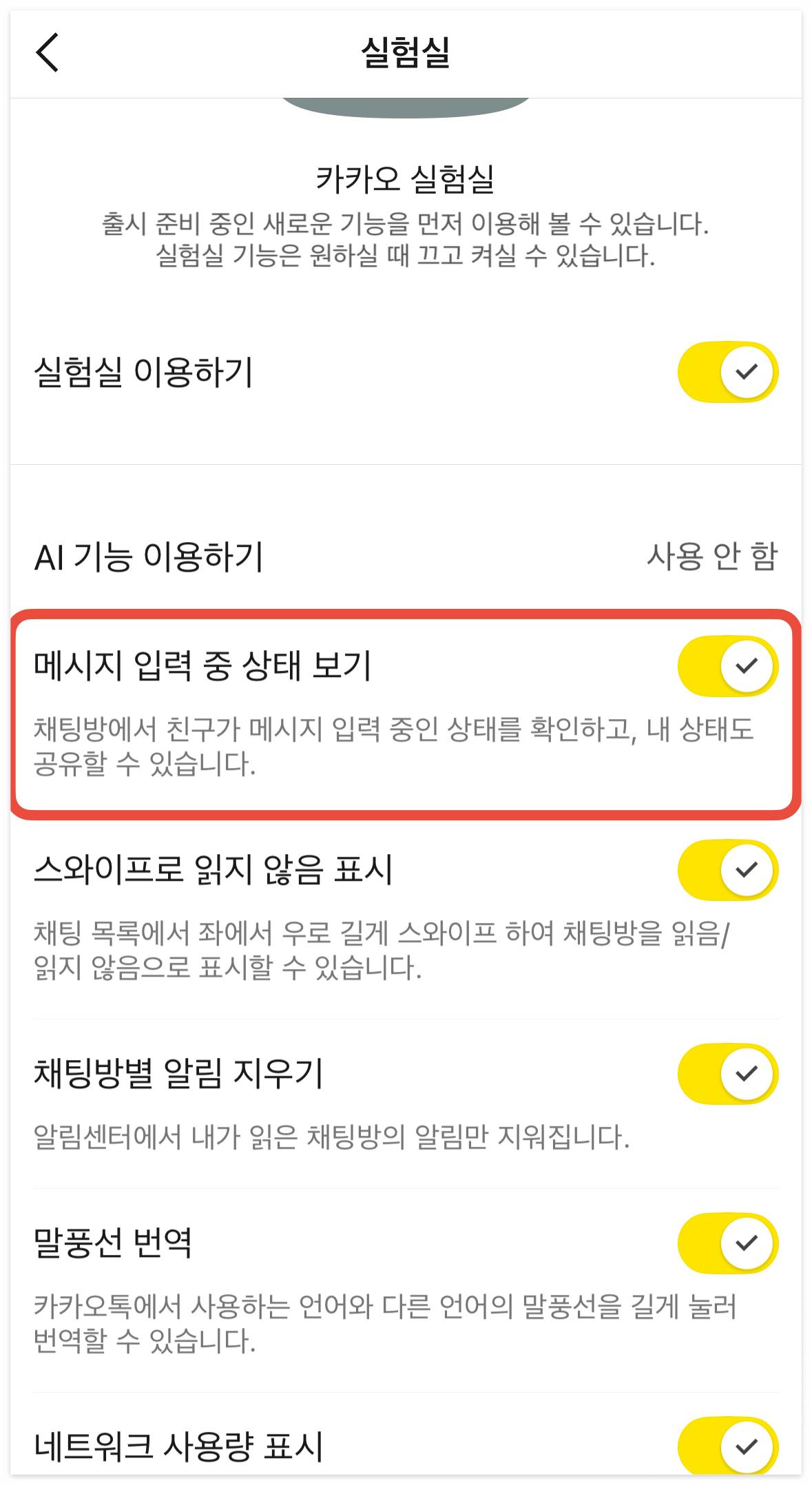눈치 보지 않고 나만의 대화 리듬을 지키고 싶다면 지금 바로 실험실 설정에서 ‘OFF’ 해보세요!