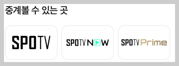실시간으로 생생한 시청을 하고 싶으신분은 아래의 SPOTV NOW를 웹 또는 모바일에서 실시간으로 시청해 보시기 바랍니다.