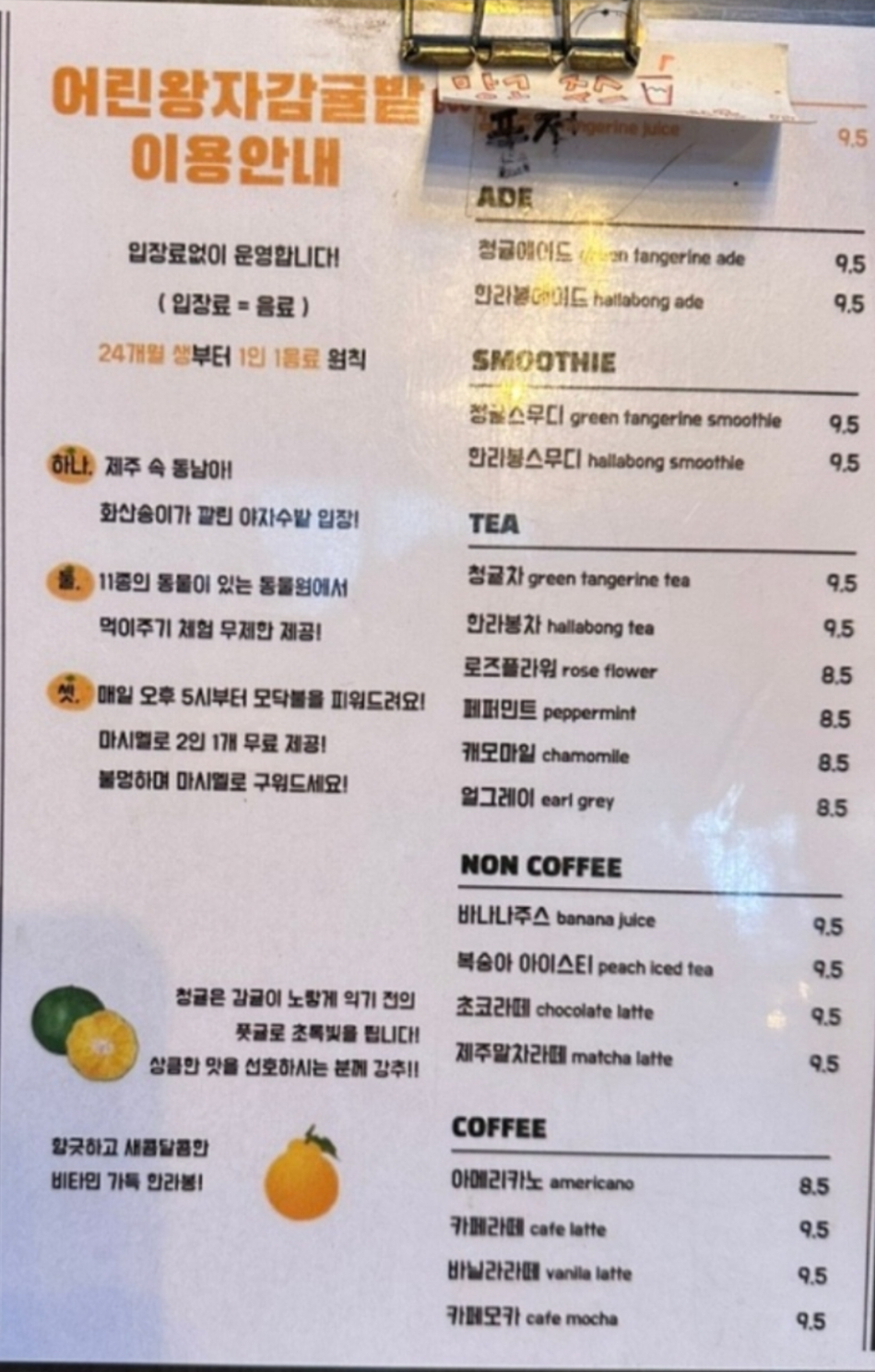 커피도 마실 수 있고 동물도 볼 수 있고 먹이체험, 감귤체험까지!