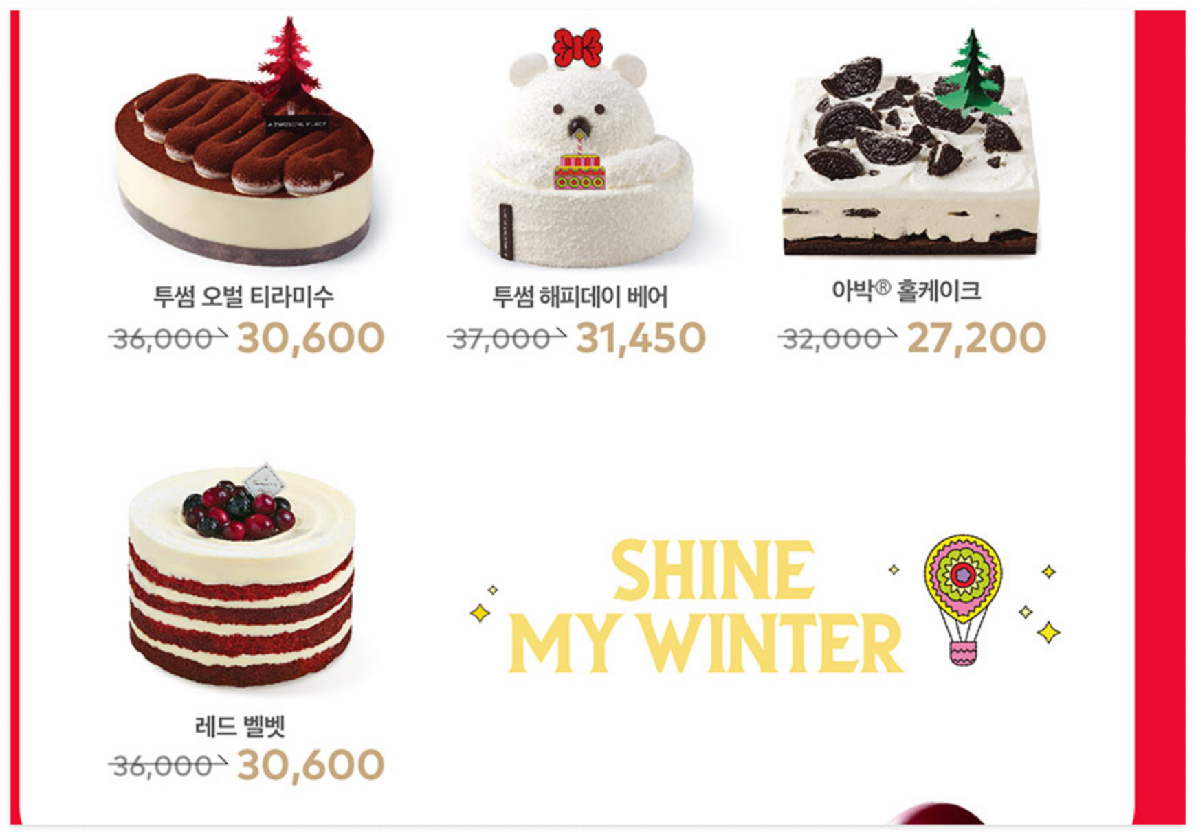 • 이 외에도 기존 인기 케이크의 홀케이크 버전이 포함되어 선택 폭이 넓습니다.
