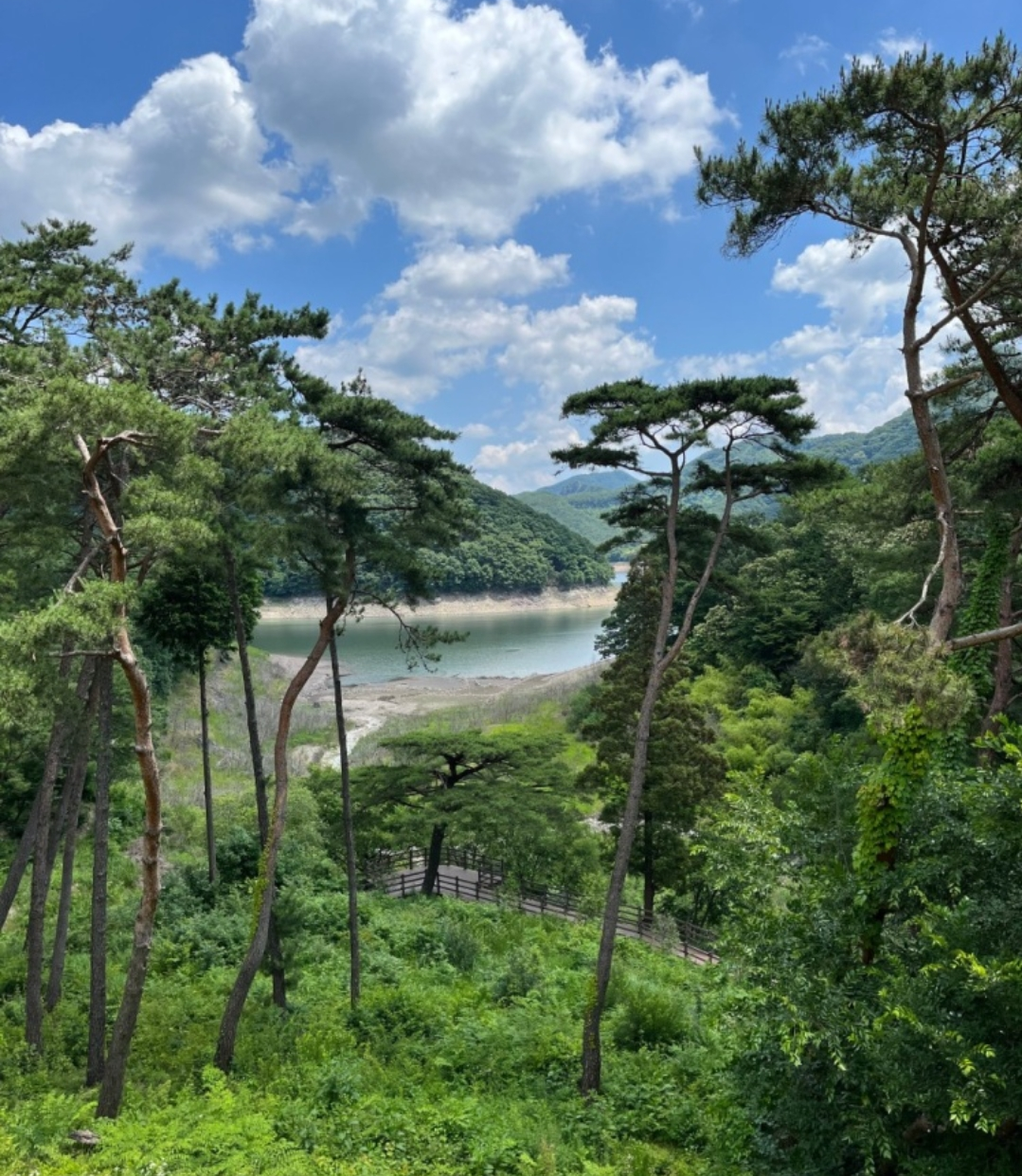사진과 같이 펜션에서 호수가 보이며, 펜션에서 호수까지 산책로도 있어서 오전에 여유롭게 산책할 수도 있는 펜션이고, 파릇파릇 초록색으로 물든 자연까지 호수랑 잘어우러져 보고있으면 마음의 안정이 드는 풍경입니다.