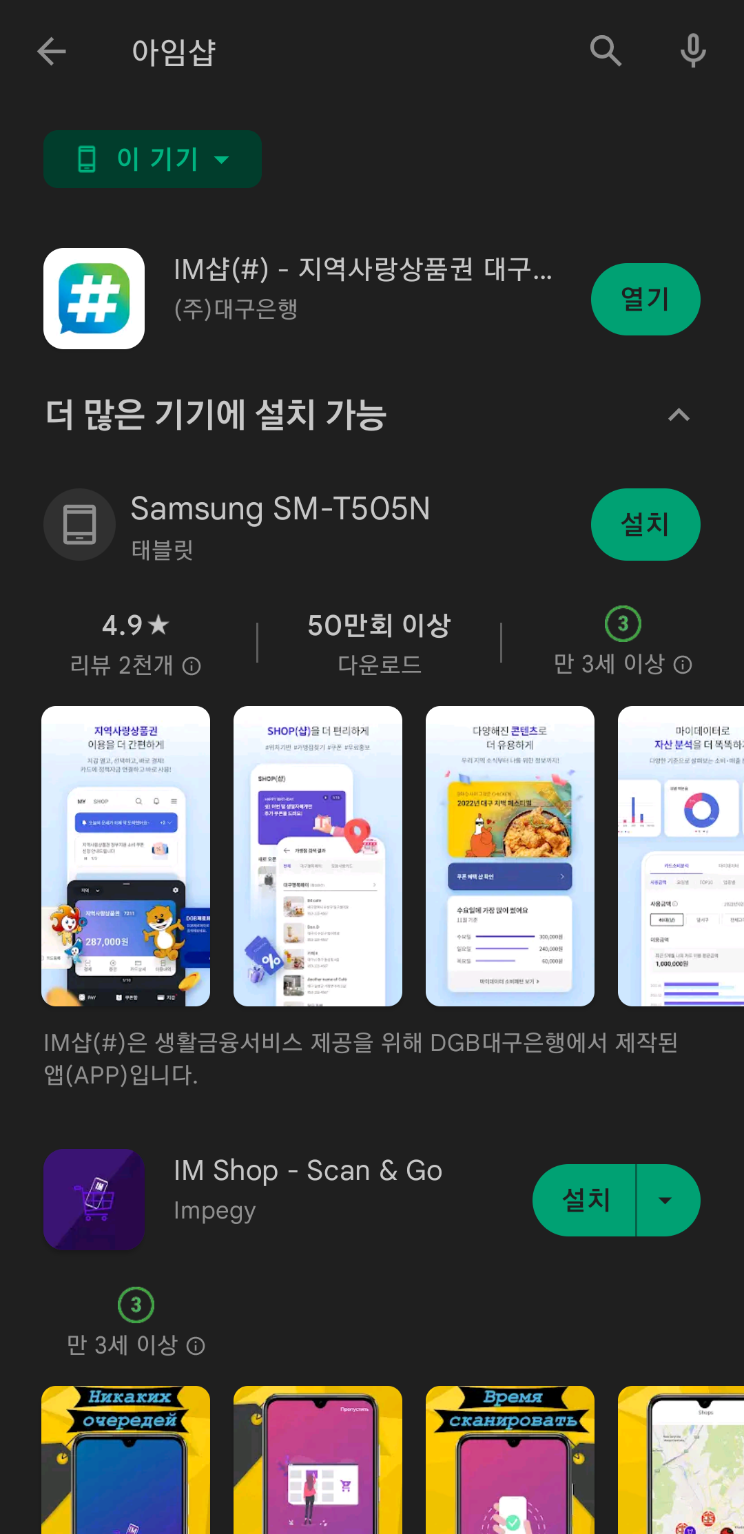 2. 온라인으로 앱스토어및 구글스토어에서 아이엠샵 또는 대구행복페이 검색후 어플 다운!