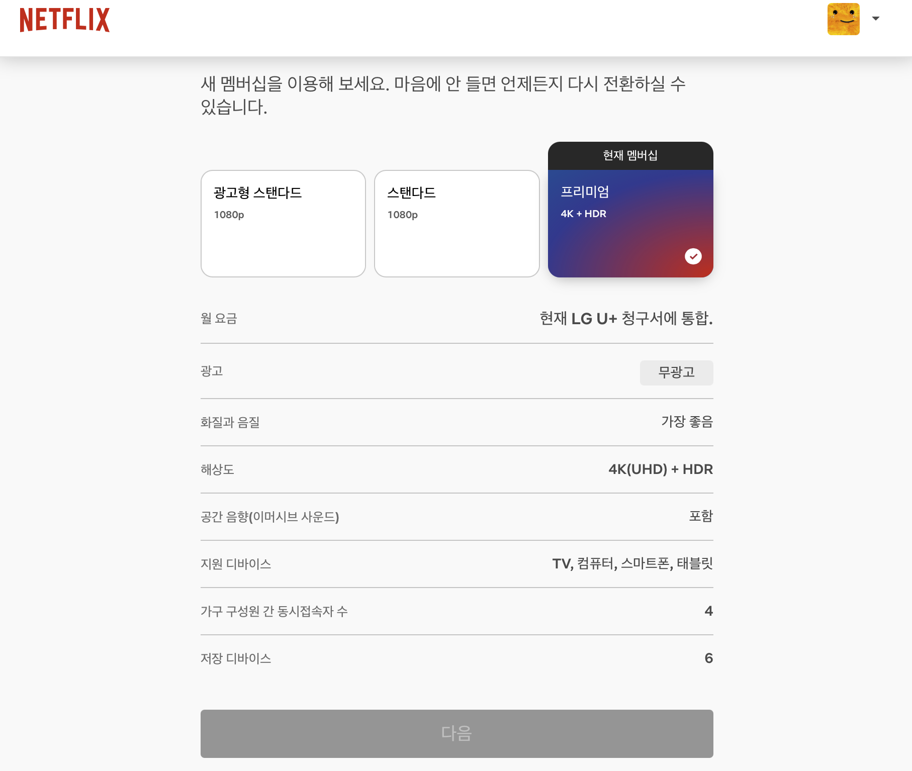 넷플릭스 요금제 변경