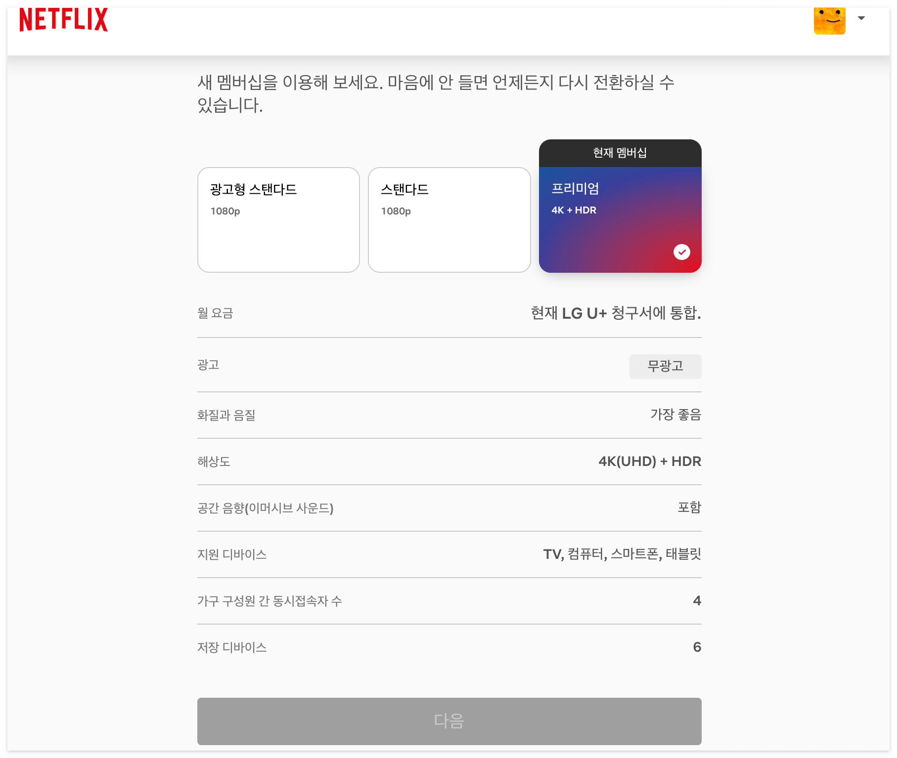 • 넷플릭스를 주 콘텐츠 계정으로 유지