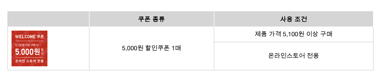 ‘신규 가입 감사 쿠폰(5,000원)’이 자동으로 발급되어 있습니다.