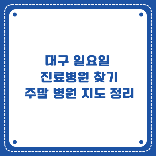갑작스러운 통증, 일요일인데 병원이 문을 닫았다면?대구 지역에서 일요일에도 진료 가능한 병원 찾는 방법과 실제 운영 병원 리스트, 유의사항까지 정리했습니다.일요일에도 진료하는 병원이 있을까?대부분의 병·의원은 주말, 특히 일요일엔 휴진하는 경우가 많습니다.하지만 대구 지역엔 응급실 외에도 일반 외래 진료를 일부 운영하는 병원이 존재합니다.이는 응급 상황이 아니더라도, 소아 발열, 피부 트러블, 감기, 약 처방 등경증 증상으로 병원을 찾는 이들을 위한 필수 정보입니다.대구에서 일요일 진료 병원 찾는 방법은?① 응급의료포털 E-gen 이용주소: https://www.e-gen.or.kr방법:‘의료기관 찾기’ → 지역: 대구 / 진료과목 선택 / ‘일요일’ 체크실시간 운영 병원, 진료시간, 위치, 전화번호까지..