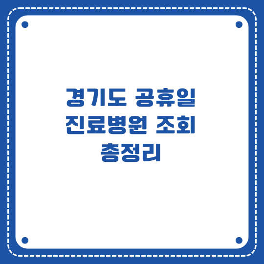 경기도 공휴일 진료병원 찾는 법, 실시간 확인부터 진료과별 운영 병원 정리