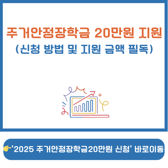2025년 1학기에 신설된 주거안정장학금 신청이 다가왔습니다. 원거리 대학에 다니는 대학생들에게 주거 관련 비용을 지원하는 장학금 제도입니다. 이 글에서 주거안정장학금 신청 조건 및 신청 방법, 해당이 되는 대학생이라면 꼼꼼히 읽어본 뒤 약 150만 원 상당 지원금 혜택을 받아보시기 바랍니다.  ▤ 목차  주거안정장학금이란?  주거안정장학금이란 원거리 대학에 다니는 기초 및 차상위학생에게 주거관련 비용을 지원하는 장학금 제도입니다. 2025년 1학기를 맞이하기 전에 처음 교육부와 한국장학재단이 신설을 하였고, 주거 관련 비용도 혜택을 볼 수 있는 유용한 지원 정책입니다. 주거안정장학금 신청 기간 및 대상  신청 기간 주거안정장학금 신청 기간 : 2025. 2. 4. (화) 9시 ~ 3.18.(화) 18시..