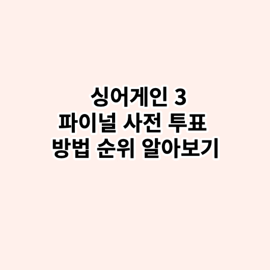JTBC 예능 프로그램 싱어게인 3 막바지로 다가오면서 최종 우승팀을 향한 온라인 투표를 실시하고 있습니다. 온라인 투표하는 방법과 순위를 알아보도록 하겠습니다. 싱어게인3 순위 알아보기 싱어게인 3 온라인 투표하는 방법 1. 싱어게인3 순위 알아보기 JTBC 예능 프로그램 싱어게인 3의 최종 진출전은 6명이 아닌 7명이 최종 진출을 하였고 1월 5일부터 1월 17일 수요일 23:59까지 3팀을 선택하여 투표를 하여야합니다. 누가 진출하였고 현재 순위는 어떤지 알아보도록 하겠습니다. 현재 순위 1위 홍이삭(58호) 2위 소수빈(49호) 3위 리진(68호) 4위 이젤(66호) 5위 강성희(25호) 6위 신해솔(46호) 7위 추승엽(59호) 소수빈은 첫 순위 발표에서 3위를 하였지만, 그다음 주에는 4위로 ..