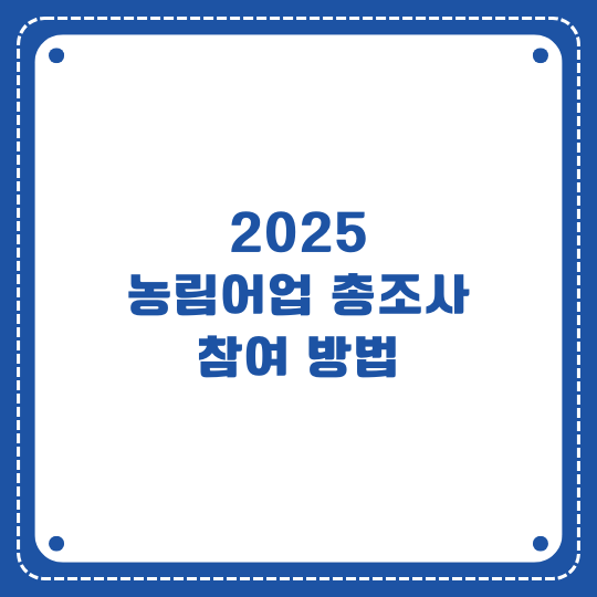 2025년 실시되는 농림어업총조사는 농가, 임가, 어가의 규모와 구조, 경영 형태 등을 파악하기 위한 국가 중요한 통계조사입니다. 조사 대상이신 분들은 일정과 참여 방법을 미리 확인해 주세요. 농림어업 총조사 참여하기📌 이 조사는 무엇인가요?농림어업총조사는 국내 농업·임업·어업 활동에 참여하는 모든 가구(농가·임가·어가)를 대상으로 5년마다 전수조사 방식으로 실시됩니다. 조사 목적은 농림어업의 구조와 분포, 경영형태 등을 파악해 앞으로의 농림어업 정책 설계 및 지역개발·복지·지원 사업의 기초자료로 활용하기 위함이에요.이번 주기에는 기후변화 대응, 스마트농업, 인구구조 변화 등 최근 농림어업 환경 변화도 반영하였어요. 📅 언제, 어떻게 진행되나요?인터넷 조사(온라인 응답): 2025년 11월 20일부터..