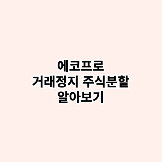2024년 4월 9일인 에코프로가 주식의 분할로 인하여 거래정지가 되며 현재 코스닥 종목에서 거래가 되지 않고 있습니다. 거래정지 이후 재개가 되면 주식분할이 어떻게 되는지, 추후 2차전지의 대장 에코프로 주가 전망은 어떻게 될 것인지 한번 살펴보는 시간이 되도록 하겠습니다. 에코프로 이슈 주식분할에 대해서 알아보기에코프로 그룹사 이슈에코프로 거래정지 : 에코프로가 4월 9일 코스닥시장에서 거래가 정지가 되면서 주식거래가 되고 있지 않습니다. 거래정지 사유는 에코프로 주식의 분할로 한다는 소식으로 전해졌습니다. 에코프로의 주식 분할 소식은 전자공시사이트인 다트에서 확인할 수 있으며, 3월 28일에 공시로 발표를 하게 되었습니다. 에코프로 거래정지 공시 보러 가기 에코프로비엠 상장폐지 소식 ( 사유 : 코..