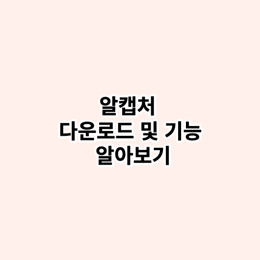 알캡처 다운로드 방법 및 주요 기능 알아보기