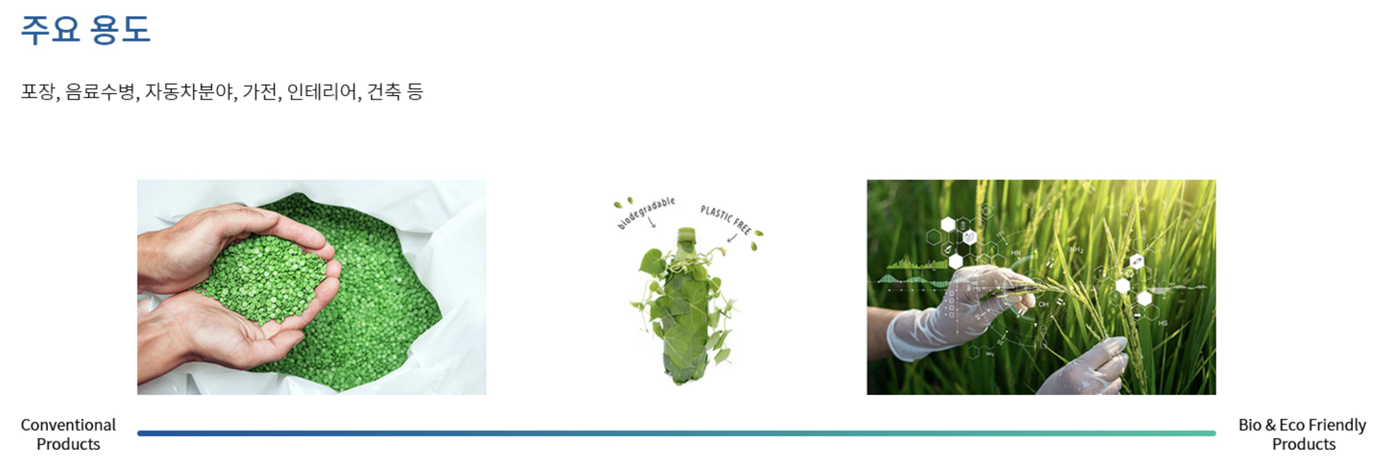 마지막 사업으로는 신성장사업은 포장, 음료수병, 자동차분야등 친환경 소재 사업으로 보시면 됩니다.