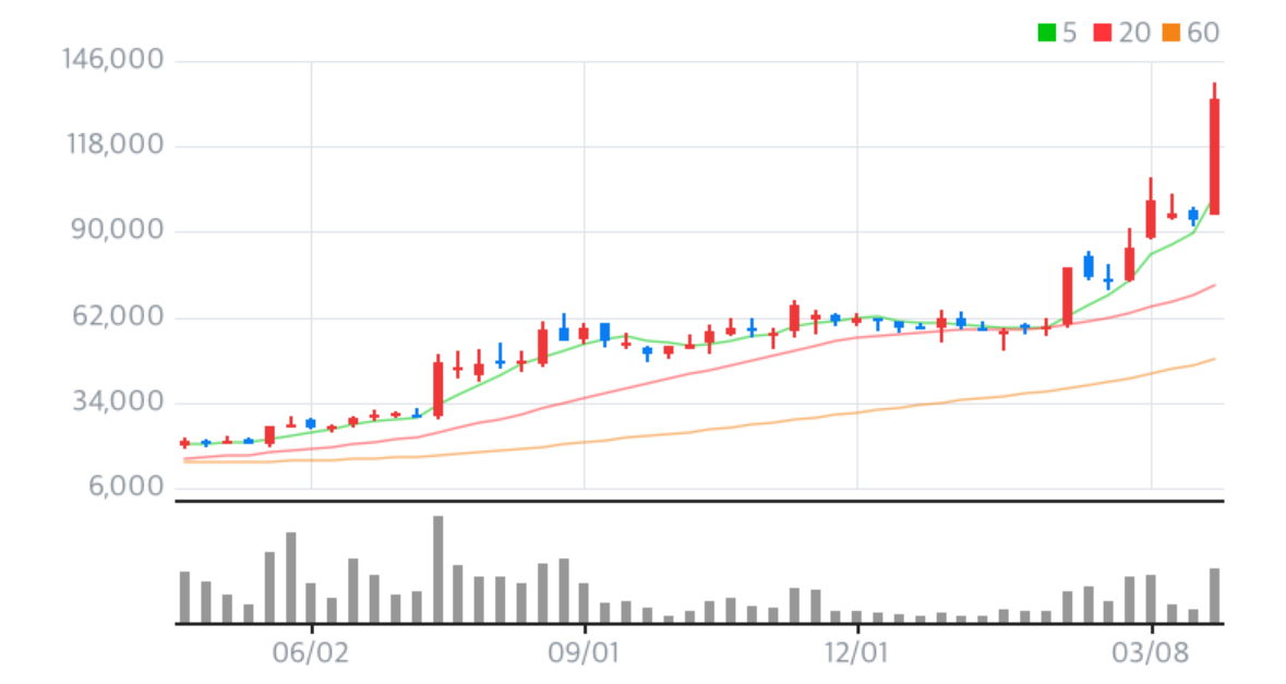 한미반도체 목표 주가는 최고 200,000원으로 발표가 되었습니다. 이유는 현재 계속된 반도체 계약공사와 호재로 인하여 그동안 반도체 주식들이 움츠렸다가 상승을 하고 있기도 하며, 한미반도체는 현재 주가 매물대가 없어서 상승을 하여 신고가를 기록하고 있습니다.