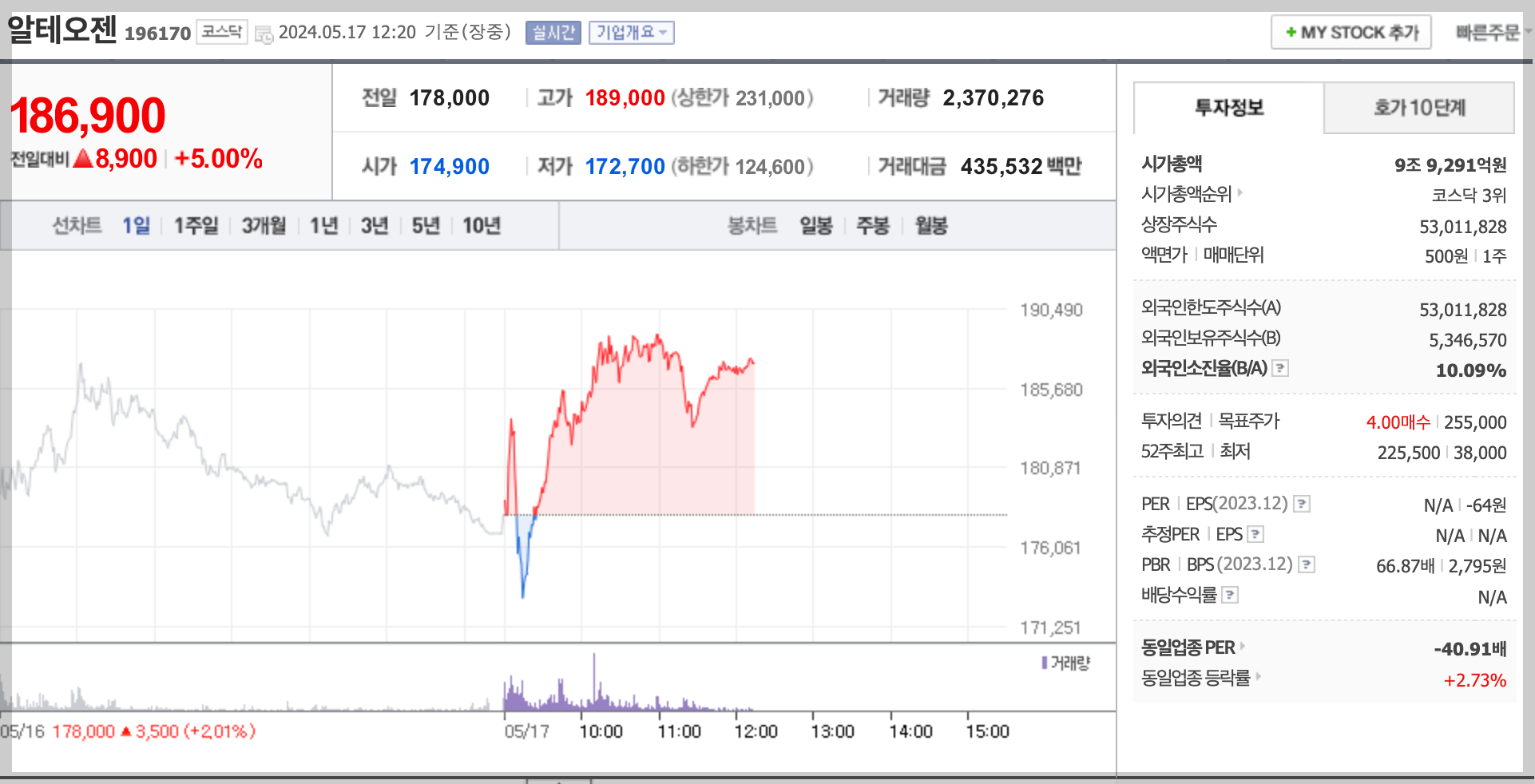 현재 알테오젠은 금일 중으로 주가 19만 원을 안착하여 장마감할 수 있을지 기대가 되는 포인트로 보이며, 현재 주가도 상승세에 있고, 1분기 실적도 기대보다 좋을 것으로 보이기 때문에 바이오종목 중에서 현재 가장 유망이 되는 기업입니다. 바이오시밀러 사업과 여러 기술력으로 현재 제품 개발을 하고 있으며, 엔켐과 더불어 MCSI지수에도 편입이 되어 현재 나쁜 소식보다는 좋은 소식이 더 있어서 더 상승할 여력이 있을 것으로 보입니다.
