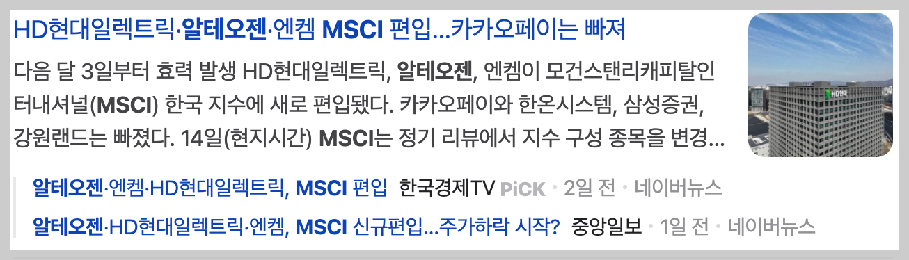👉 알테오젠 MSCI 편입 이후 주가 전망 보러 가기