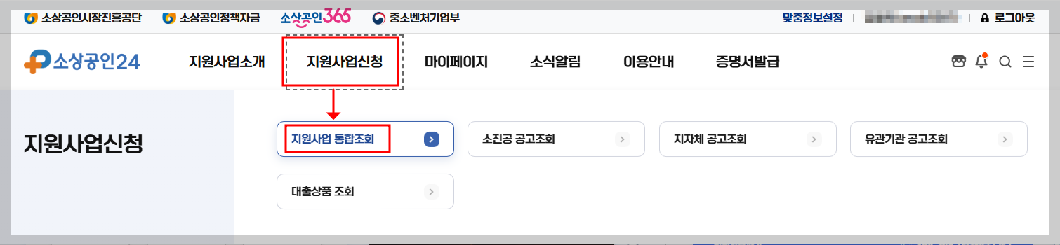- 로그인 후 ‘지원금 신청 내역’ 메뉴 선택